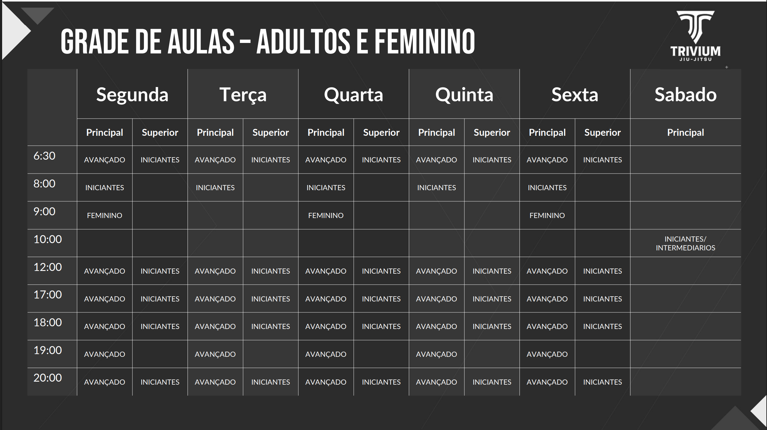 Confira nossa programação de segunda a sábado e encontre o horário perfeito para você treinar